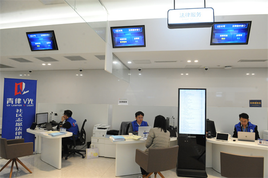 谭颖说,今年,区司法局推出了“青律V光”社区法律志愿服务品牌,推进辖区律师队伍加入“微网实格”,目前已经有750名律师加入成为志愿者。园区里的法律服务站“青律V光”品牌的生动实践,让更多的青年律师下沉社区,参与“微网实格”,在为企业提供法律服务的同时,也在实践中不断得到锻炼与提升。