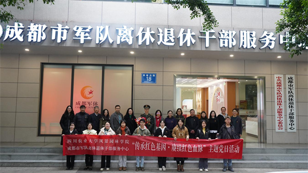 下一步,成都市军休中心、四川农业大学风景园林学院将本着“优势互补、相互支持”的原则,在开展党组织建设、爱国主义教育、保护红色资源等方面加强合作,通过深化校地共建,厚植青年学生家国情怀,进一步传承红色基因,赓续红色血脉,营造爱国拥军、尊崇军人的浓厚社会氛围。(图由成都市军休中心提供)