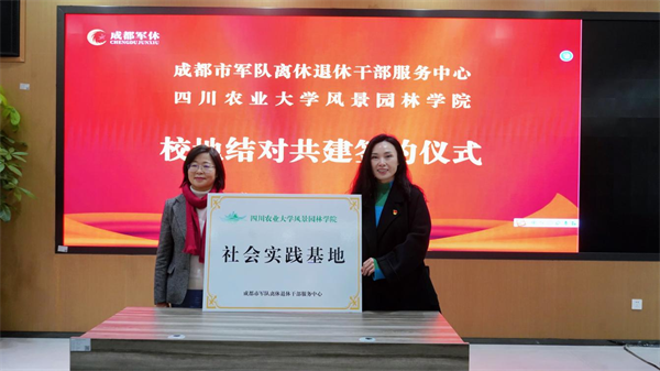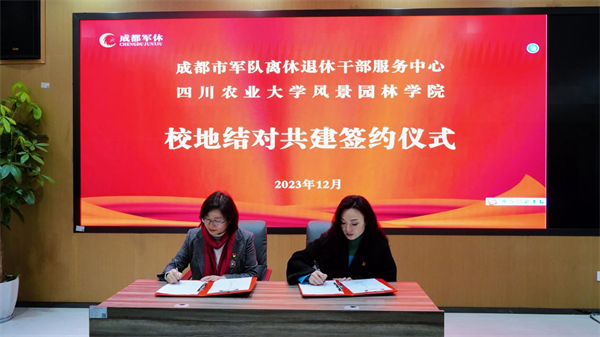在校地结对共建签约仪式上,双方主要负责人共同签署了框架协议,并将成都市军休中心作为四川农业大学风景园林学院的“社会实践基地”“红色教育基地”,共同推动红色基因代代相传。