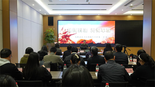 军休功臣梁强以“拼搏到底·无悔军旅”为主题向师生代表进行红色宣讲,他以救民于水火的英雄为切入点,讲述了自己见义勇为、战胜伤痛的战斗经历和心路历程,感人至深、催人泪下。宣讲结束后,学生代表向梁强献上鲜花,表达敬仰之情。师生代表们深感敬佩,对军休干部们不畏生死、勇往直前的战斗精神表达了真挚的敬意。