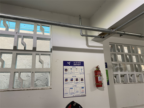 根据成都市简易消防喷淋安装的相关规范,每三平方米就要设置一个喷淋,在府南街道双顺路4号院内,这里的电动车车棚面积较大,整个车棚在改造时便设计了30多个喷头,足以覆盖车棚内所有角落。