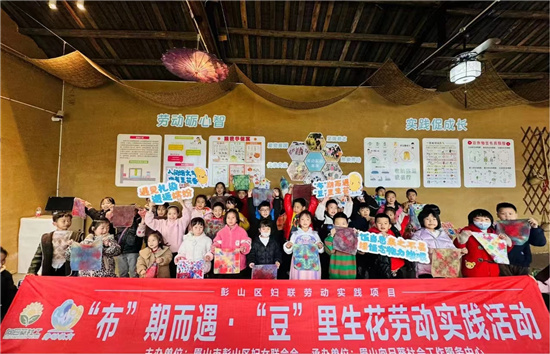四川新闻网-首屏新闻成都12月12日讯 “读万卷书,行万里路”,经历是最好的学习,研学是最美的相遇。为了让儿童深切懂得劳动的意义,传承民间美食文化、学习非遗扎染艺术,12月10日,彭山区妇联携手眉山向日葵社会工作服务中心组织金烛村38名儿童开展以“‘布’期而遇 •‘豆’里生花”劳动实践活动。
