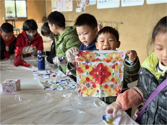 一方小小的染布承载着数千年的劳动与智慧,在孩子们手中变成了五彩斑斓的艺术品,为初冬增添了一抹缤纷。