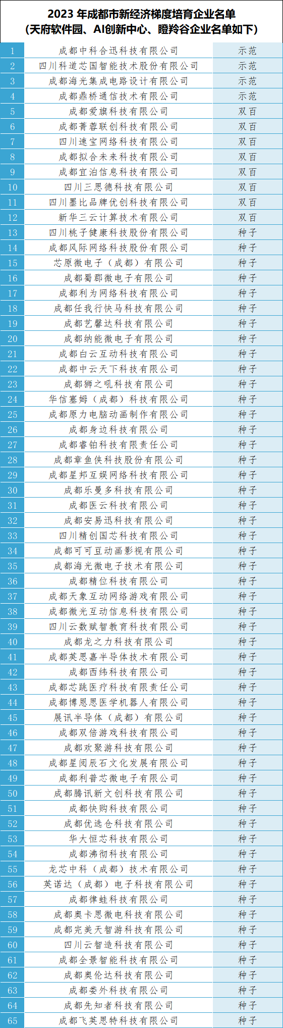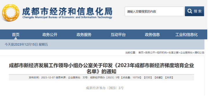 名单出炉!天府软件园60多家园区企业入选2023年成都市新经济梯度培育企业名单
