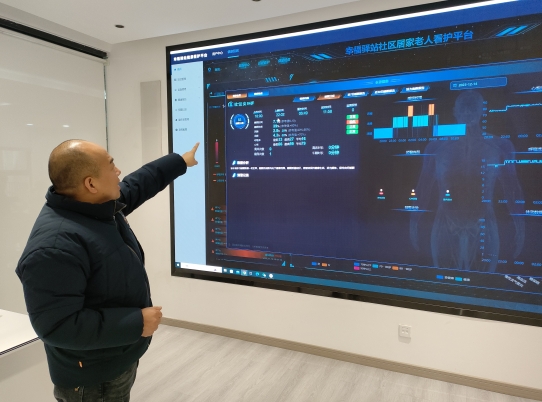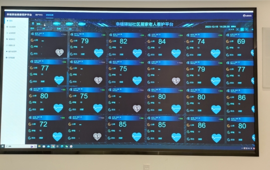 网格员能精准掌握社区独居老人的状态,源于一套用于社区精准治理的智慧系统。走进社区二楼的智慧蓉城文家街道运行中心,一块LED屏幕上满是蓝色的心形图标和数据,“周爷爷,91岁,心率82;乔婆婆79岁,呼吸率19,心率85……”大屏实时更新着老人们的信息和身体监测数据。康庄社区书记周成军指着屏幕说,"这是社区的'幸福驿站社区居家老人看护平台',我们把辖区内独居、高龄、空巢老人等特殊群体纳入该系统,并录入子女信息以及志愿者联系名单。针对独居老人,还特别为他们建立电子健康档案实时监测,可监测心率、呼吸率、睡眠质量等。”