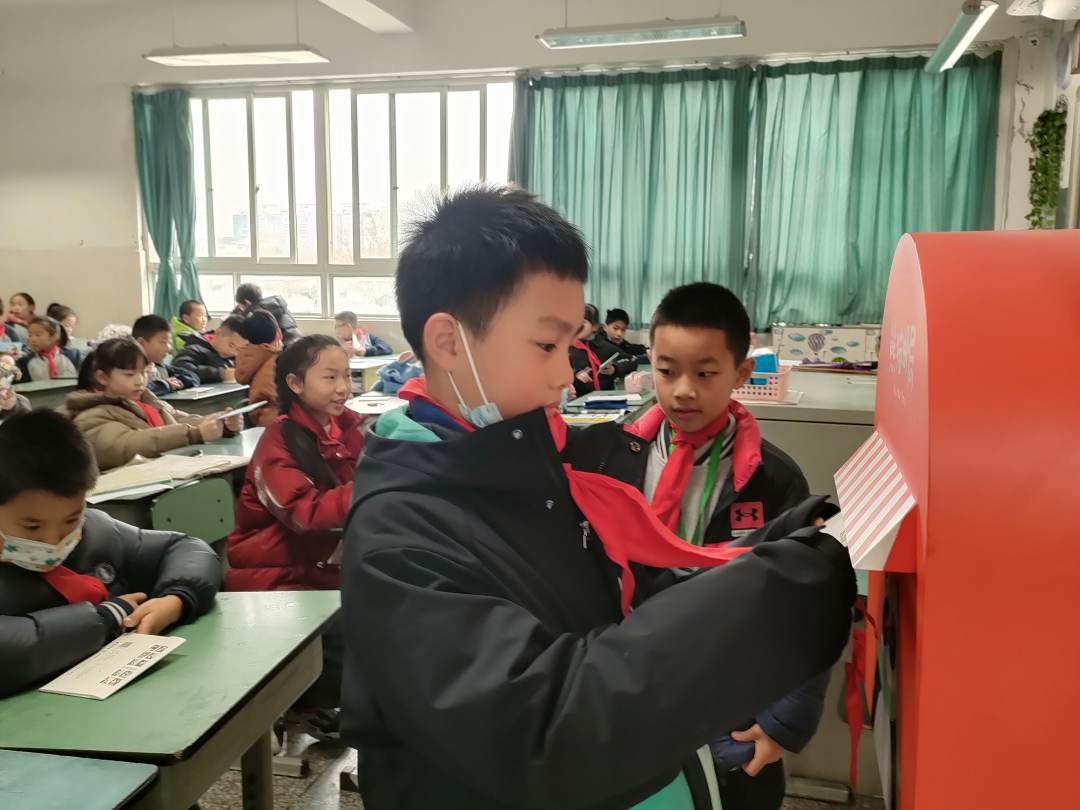 在四年级四班语文老师钟老师的组织下,孩子们努力压抑内心的激动、好奇,井然有序走向YOYO信箱,郑重将亲手写好的书信投进了信箱,寄给心中的“他(她)”。