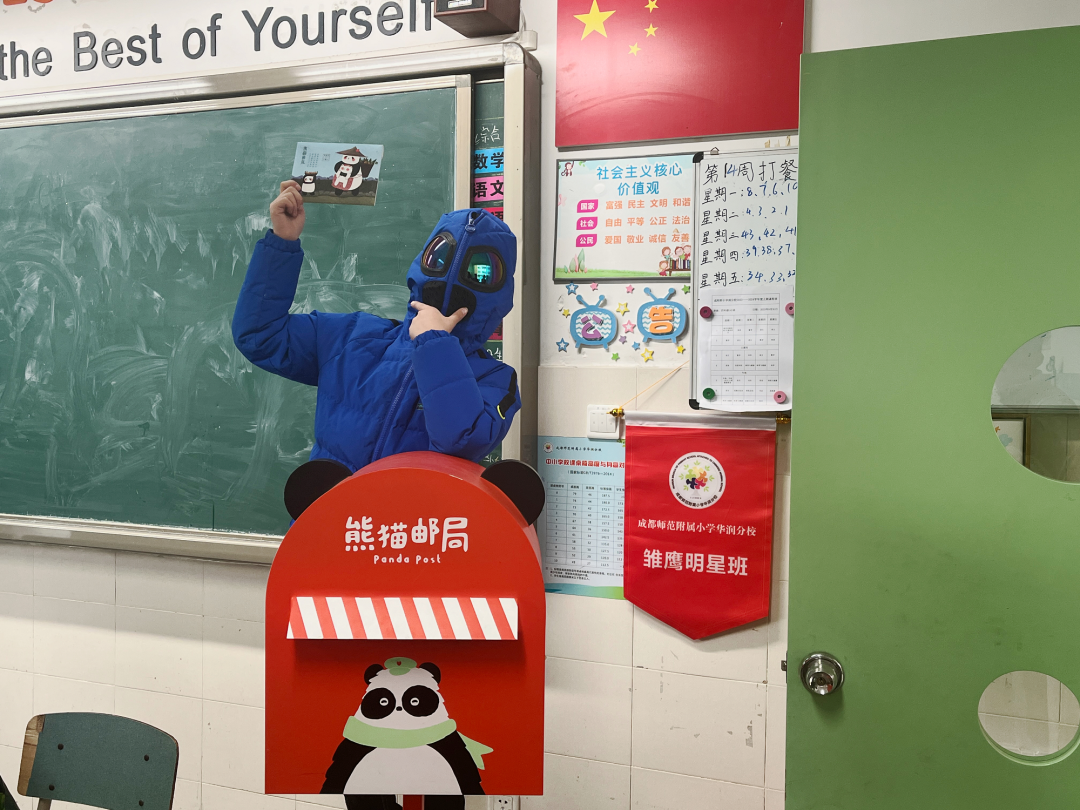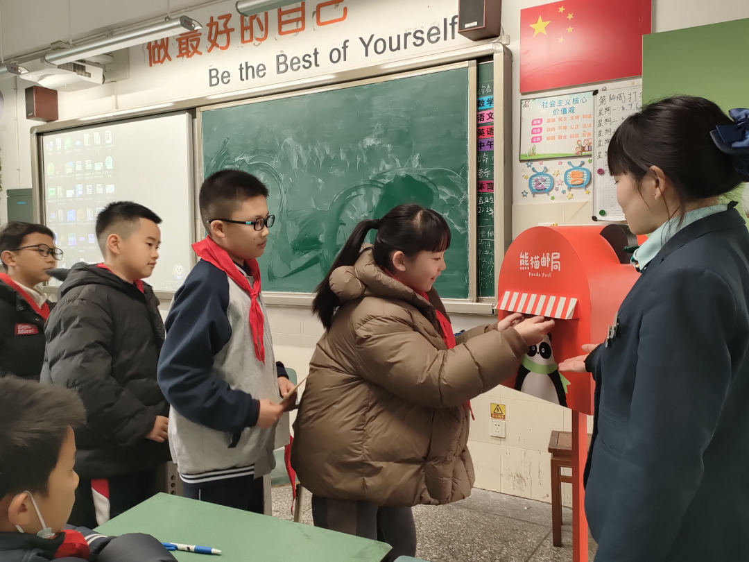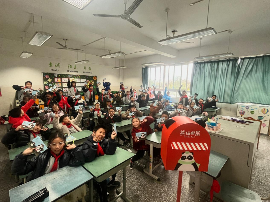 书信一直是人们和远方的亲人朋友互通消息、交流感情的主要方式,即使在当下仍然是重要的联络手段。据钟老师介绍,人教版小学语文四年级上册六单元作文便是“写信”,孩子们按照规范格式向亲友或其他人写好书信后,可以通过邮局寄给对方。成都锦江邮政公司龙舟路支局获悉学校有书信邮寄需求后,第一时间与学校取得联系,并主动上门提供了信封和邮票。省邮政公司集邮与文化传媒部向孩子们赠送了熊猫主题明信片。