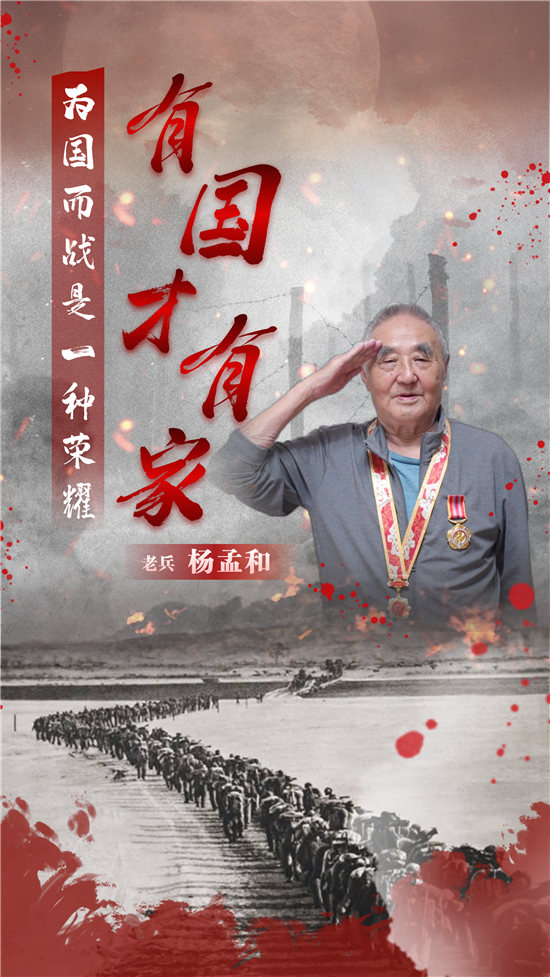 杨孟和做好了一去不回的准备,他认为,为了国家安全奉献自己的生命是迫不得已,也是荣耀。“当时美国帝国主义都打到鸭绿江边上了,形势刻不容缓。有国才有家,为了国家安危我们就算是一去不回也在所不惜!”时隔多年,谈起入朝初衷,杨孟和的眼神依然很坚定。