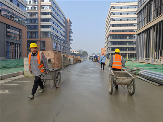 从去年开工以来,500余名工人“火力”全开,拼速度赶进度,全力投入建设中。项目负责人告诉记者:“自开工以来,周末和节假日都会安排工人在岗或轮休,根据各阶段的施工进度调整人员,确保有80%的管理人员开展工作。”在工地务工的高师傅说:“本来元旦想回老家,想到马上要放春节了,坚持一下,抓紧把活路做好,过年再回去。”