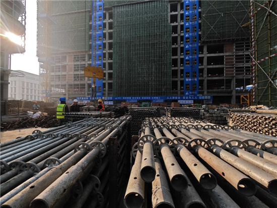 “一二三,吊车起,速度保持平稳。”走进青羊总部经济基地产业园3期的建设现场,地面上按类别摆满了盘扣架、扣件、工字钢等建筑材料,部分工人正将材料垒好捆扎准备起吊。记者看到,现场5栋建筑外立面铺着绿网,整体“轮廓”已初具雏形,该项目负责人介绍,目前项目主体结构已全部封顶,室内二次结构完成70%,外墙、龙骨完成90%。