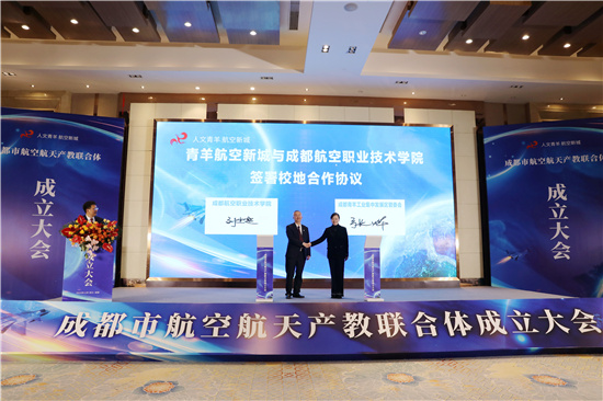 四川新闻网-首屏新闻成都1月3日讯 日前,成都市航空航天产教联合体成立大会在青羊区举行。据了解,该联合体由青羊工业集中发展区、航空工业成飞、成都航空职业技术学院牵头,携手政府、行业、企业、院所、学校等80余家单位,围绕航空新城建设,共同探索构建与成都航空航天主导产业发展需求相适应的成都市航空航天产教联合体。联合体以校企协同育人与协同创新为中心任务,探索建立适应航空航天产业转型和升级需要的产教融合发展新模式,全力推动航空航天产业高质量发展。