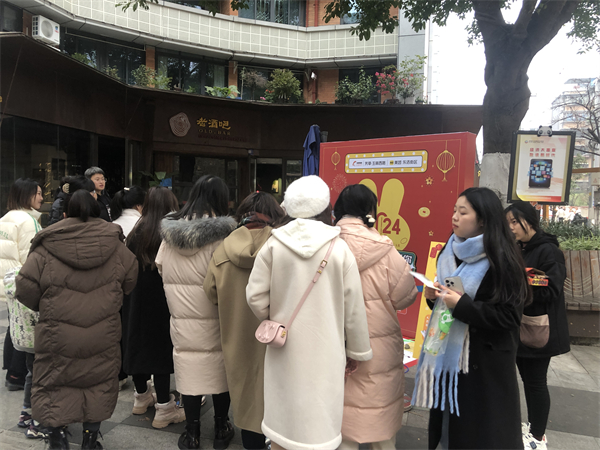 玉林西路沙子堰文创街路口西侧,线下设置打卡装置,将开展投雪球、套圈、击打高尔夫球、弹弓玩偶、好运投壶等互动游戏,现场还会发放促消费优惠补贴券、小礼品、歪马酒水畅饮等,还有街边驻唱点燃乐活之夜。