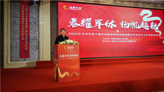 窗外岁寒犹凛,堂上暖意融融。活动在成都市军休老年大学锦江区分校带来的成都军休之歌《永恒的军魂》合唱声中拉开序幕。成都市退役军人事务局党组成员、副局长孙振中介绍了2023年成都市军休工作情况。过去一年,在市委市政府的坚强领导下,在省厅的关心支持下,全市军休服务保障效能优化提升、成渝军休联动共建持续深化、创新推动服务管理持续升级、军休干部红色资源作用有效发挥、军休干部“两个待遇”高质量落实,谱写了成都军休工作的华丽篇章。
