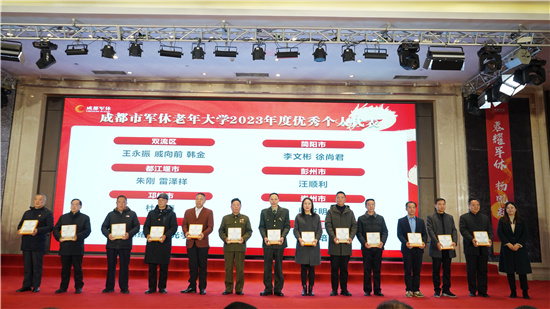 表彰大会宣读了成都市军休老年大学聘任决定,并对成都市军休老年大学优秀分校、成都市军休老年大学优秀个人进行表彰。
