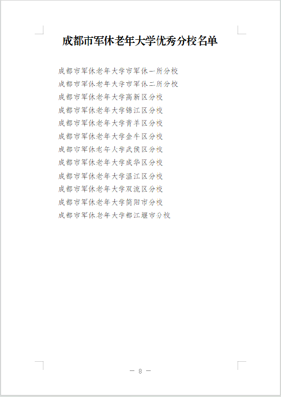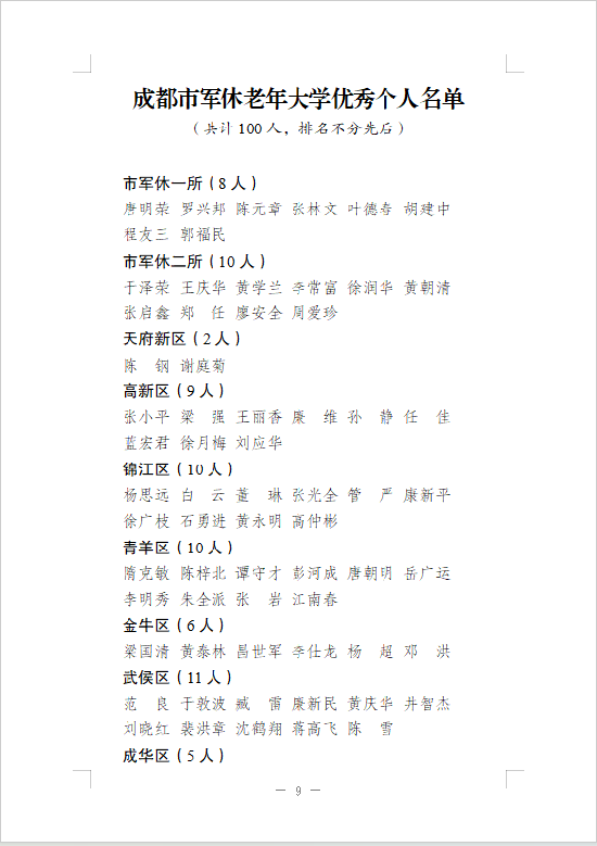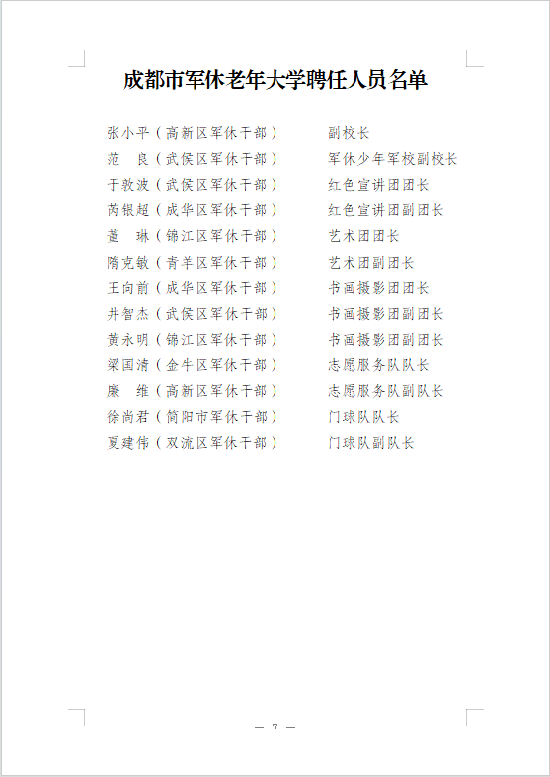 接下来,我们一起看看成都市军休老年大学聘任及表彰名单......(图由成都市退役军人事务局提供)