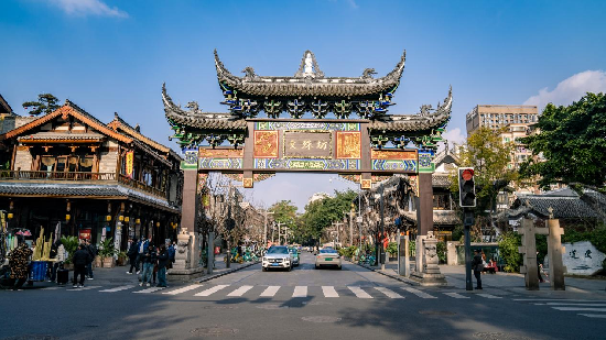 沿着白家塘、楞伽庵、通顺桥街漫行,抬望眼感受古朴建筑染带的禅意,驻足转入院落,潮流店铺目不暇接,入夜依然人声鼎沸。美食、汉服、剧院,人间烟火、妙趣横生,文化传承与潮流消费碰撞,街区如新,历史如沐,沉醉在这穿越千年的意境与韵味。(图由成都市青羊区委宣传部提供)