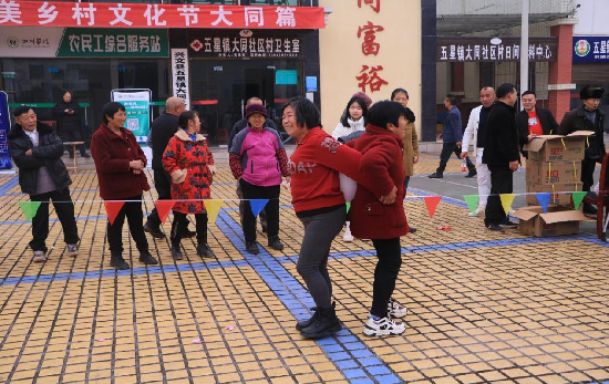 四川新闻网-首屏新闻成都1月26日讯 腊月初九,微风阵阵,五星集市上来往的行人和车辆络绎不绝,热闹非凡,年味儿十足,让人困身车内仍不觉落目窗外。当我们赶到四川省宜宾市兴文县五星镇大同社区村公所时,一场主题为“感恩奋进和美大同”的团年活动正在火热准备中。