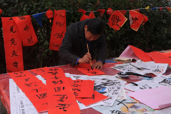 大同社区村书法家挥毫书祝福,墨香迎新春