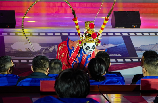 曲艺送真情,军民一家亲。慰问期间,成都市双拥办还特邀四川省川剧院艺术家走上北部战区海军某驱逐舰支队迎新春晚会舞台,为部队官兵带来精彩纷呈的“川剧变脸”节目,并与官兵们零距离互动,赢得了满堂喝彩和一致好评,把节日气氛下的鱼水情谊推向了高潮。(图由成都市退役军人事务局提供)