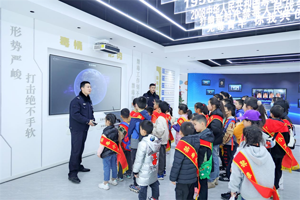 突出“人文青羊·航空新城”区位特点,以“科技+禁毒”理念全新打造的青羊区禁毒教育基地让禁毒学习乐趣十足。全球毒情形势、禁毒历史长廊、“吸毒后的你”、仿真毒品光电认知、禁毒知识竞赛、禁毒成果资讯……每一个互动终端设备都让小卫士们好奇不已,伴随警院大哥哥们的专业讲解,禁毒知识学习更加具象化与生动化。从对毒情毒史的了解更深知禁毒工作任重而道远;从对毒品知识的学习更强化拒毒防毒的能力;从对禁毒英雄的缅怀更加坚定履行禁毒誓言;从对全民参与禁毒斗争更加明白禁毒是全社会的共同责任,深刻体会到美好无毒世界需要你我的共同努力!