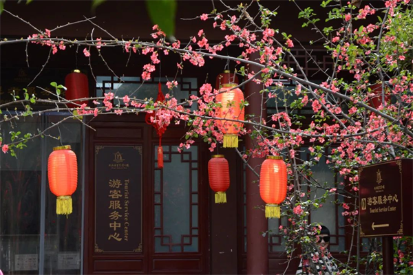 在北大门的旁边有一个景观叫“散花楼”。这是一个四层仿古楼,建筑风格独特,古朴典雅,高高地伫立在锦江边,面朝琴台路,背靠百花潭,四周全无遮挡,路人经过就可观赏。