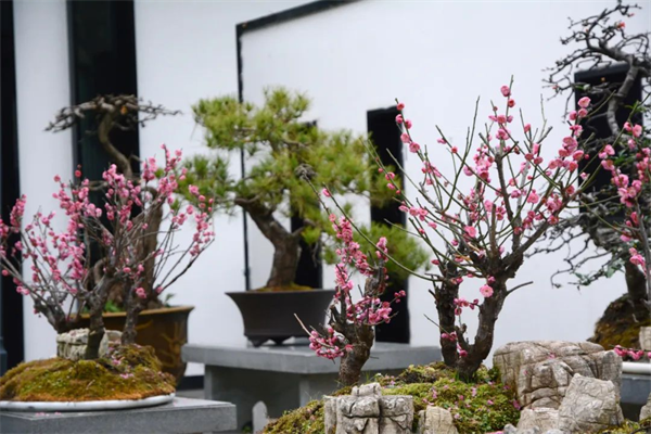 整个园内陈列的近千盆山水、树桩盆景中,以沙碛石和桩头最具特色,突出了剑南派盆景“古朴秀雅、苍劲健茂”的艺术风格。