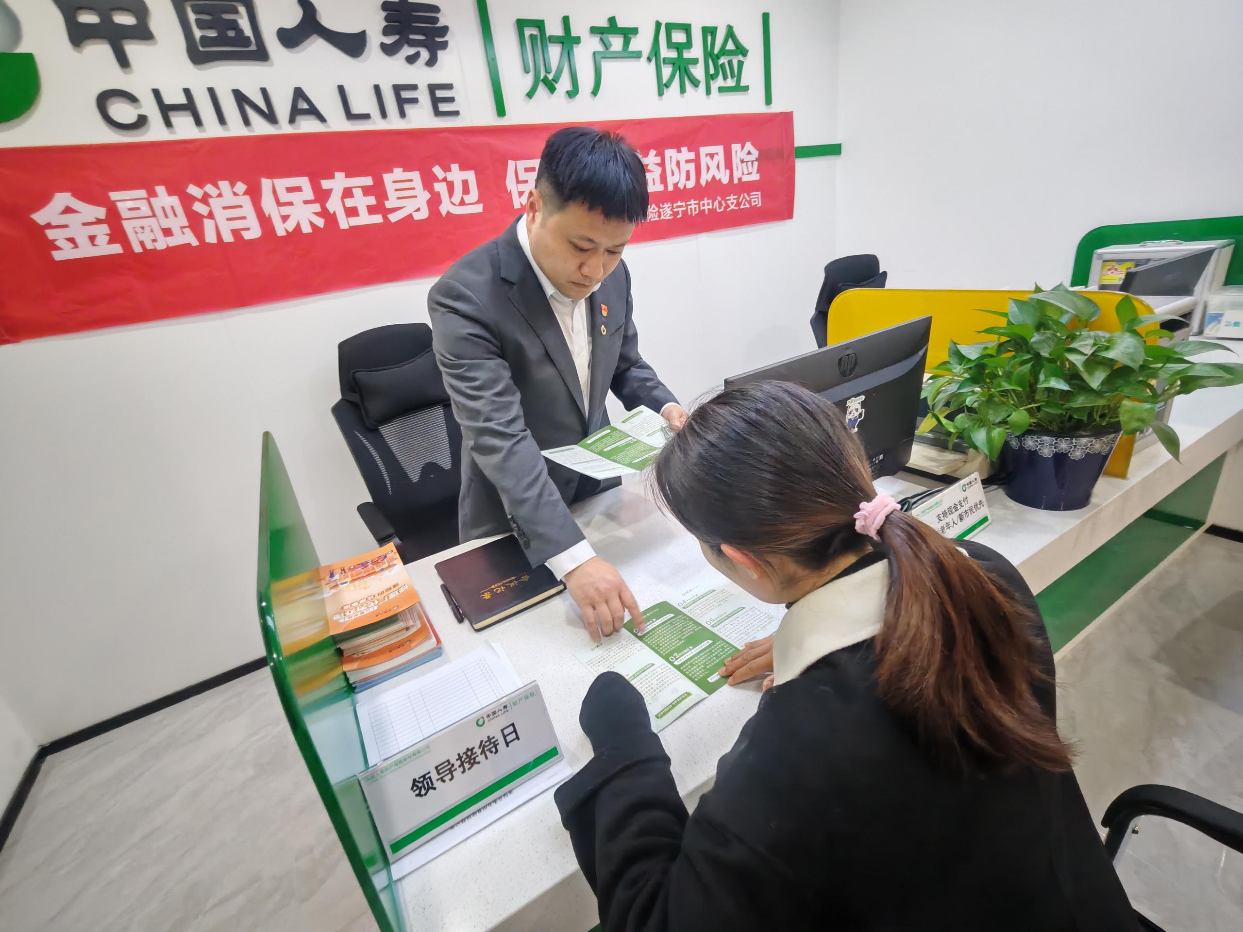 3月14日,中国人寿财险遂宁市中心支公司总经理现场接待来访客户。