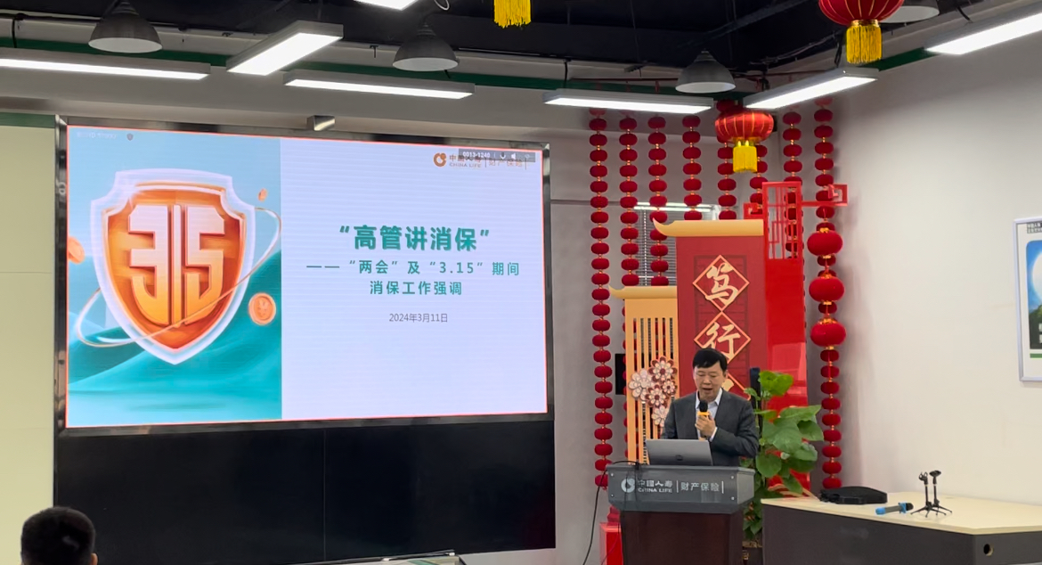 3月15日,中国人寿财险四川省分公司党委书记、总经理周阔海落实“高管讲消保”要求,面向干部员工强调要始终重视消保工作,全面满足保险消费者需求、全面保护消费者合法权益、全面化解处置投诉及矛盾纠纷、全面优化消费者感受体验,并通过“五进入”等多层次多维度活动,提升消保宣教触及面、影响力;要求公司全员切实抓好“3·15”期间各项消保工作,尽职担当、守土有责。