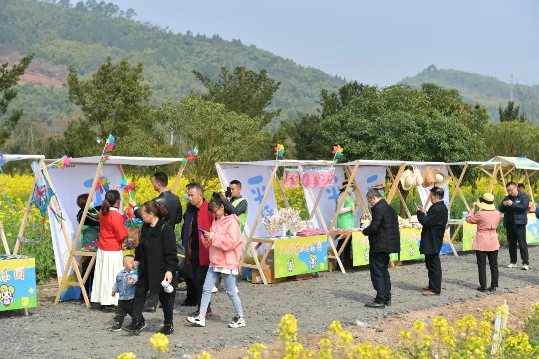 本次活动以乡村消费场景创新和田园生态旅游体验为导向,在3月23日活动现场,各地游客潮涌而来,花田小火车、花田UTV等项目早已排起了长队。天府雅集区域的各类文创美饰、潮玩精品琳琅满目,吸引了一众年轻游客的青睐。
