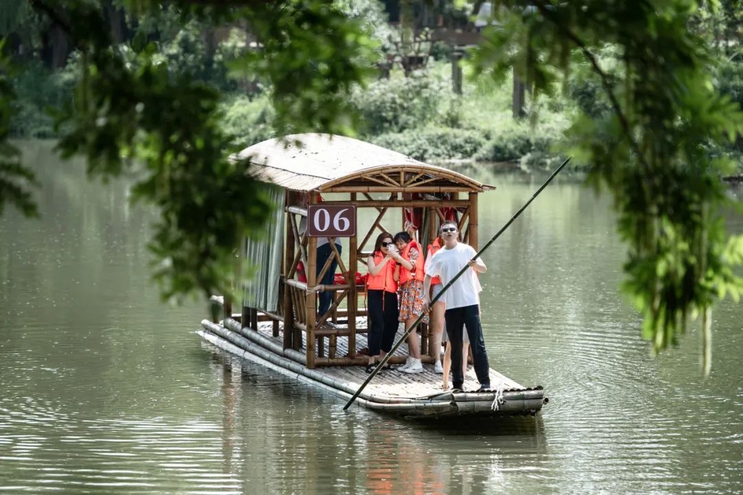 花开醉游人,赏花踏青正当时!天府农趣乐园生态旅游季正在火热进行中,即日起到清明假期,约上亲朋好友前往平乐古镇天府农趣乐园,感受“聚坐花田吃火锅”的独特松弛感、体验绿皮小火车穿越澎湃金浪的春日浪漫、融入天府雅集下成都乡村新景象的烟火气、感知公园城市的乡村创新表达。同时,还可到川西竹海景区遨游十万亩竹海,打卡武侠同款竹林,徒步吸氧、体验飞拉达攀登、竹海滑道等竹间乐趣。(图由成都文旅集团提供)