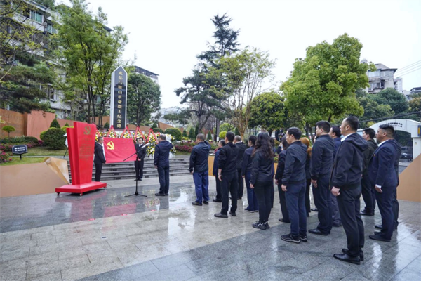 3月30日9时,成都市青白江区退役军人事务局党支部在区英烈纪念园举行“铸魂·2024·清明祭英烈”主题党日活动。全体党员干部职工整齐列队,向烈士纪念碑默哀致敬,敬献鲜花,并重温入党誓词。