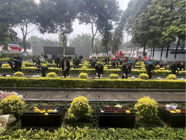 国歌响起,默哀仪式开始,大家怀着沉痛的心情,向烈士纪念碑敬献鲜花,并绕行一周,致以崇高的敬意。活动现场,大家分工协作,清理烈士陵园的环境卫生,让烈士安息之地更加整洁肃穆。全体参加人员重温了革命先烈大无畏的英雄气概,倍加珍惜今天来之不易的幸福生活。