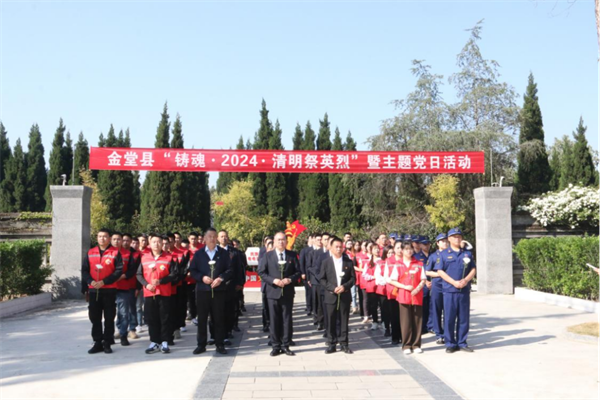 3月30日,金堂县退役军人事务局在县烈士陵园举行“铸魂·2024·清明祭英烈”暨主题党日活动,70余名干部职工、拥军联合会代表及战旗红志愿者参与。全体人员肃立在革命烈士纪念碑前,默哀、鞠躬,缅怀为国家和人民英勇献身的烈士。