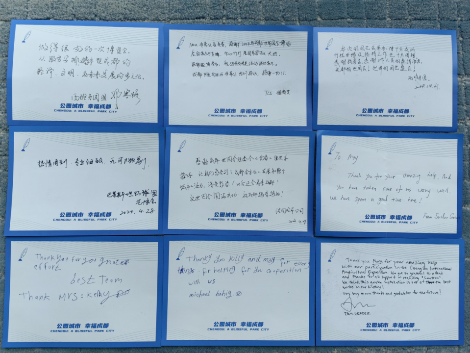 这样的感谢信并不是个例。“在世园会执委会统筹部署下,成都文旅集团旗下成都中青旅精心挑选80位精兵强将,和嘉宾们一路同行,共赴繁花之约。”成都中青旅总经理邵丹介绍,成都世园会期间,在成都天府国际机场、双流国际机场、成都东站、3个嘉宾酒店及开幕式主会场,设置了8类语种的7个服务咨询点,从抵离接机、住宿餐食,到开幕式保障、城市文化活动,为来自30个国家、70个城市共计1600人次的嘉宾保驾护航。正是青旅人用优质、专业、暖心的服务,收获了AIPH及美国、澳大利亚、德国、不丹、西班牙、法国、巴基斯坦、埃及、苏丹等多国嘉宾的感谢信。