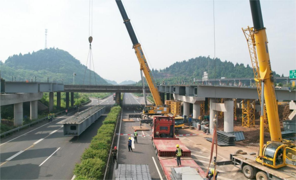 四川新闻网-首屏新闻成都5月15日讯 5月9日,成南高速扩容工程项目成功完成桂花枢纽1#桥及G匝道桥跨线段钢箱梁架设。