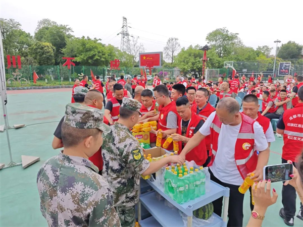 培训期间,成都市退役军人事务局相关负责同志时常来到训练基地,看望正在培训中的“战旗红”志愿者骨干,现场召开工作会,协调解决问题。天气炎热时,邛崃市爱国拥军联合会带来瓜果和清凉饮料,给参加户外拓展的“战旗红”受训骨干带来一丝清凉。青羊区退役军人战旗红老兵放映志愿服务队专程带来《雄兵出击》,为受训“战旗红志愿者”骨干献上了一场别具风味的“战旗红坝坝电影”……各方慰问极大地鼓舞了“战旗红”志愿者骨干士气,纷纷表示一定要珍惜这次难得的培训机会,将牢记使命和担当,用实际行动践行志愿精神。