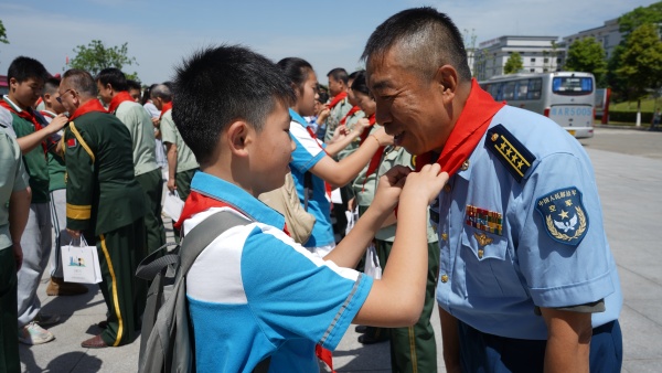 在互动环节,学生们为军休功臣佩戴红领巾,表达敬意和感谢。军休功臣们也为学生们赠送了学习文具,鼓励他们好好学习,成为国家的栋梁之材。部队官兵还为军休功臣献上鲜花,表达对他们的尊敬和祝福。成都高新区军休功臣童自勇现场寄语同学们,希望他们能够珍惜现在的幸福生活,努力学习,将来为祖国的繁荣富强贡献自己的力量。