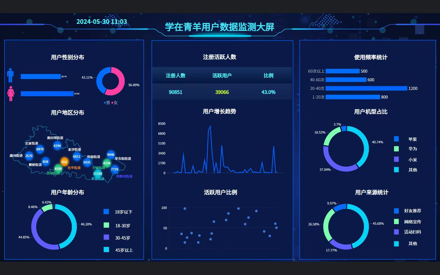 中心还建立了大数据检测平台,通过平台实时掌握注册学员人数,课程报名人数情况等,可以实现精准画像,精准服务。