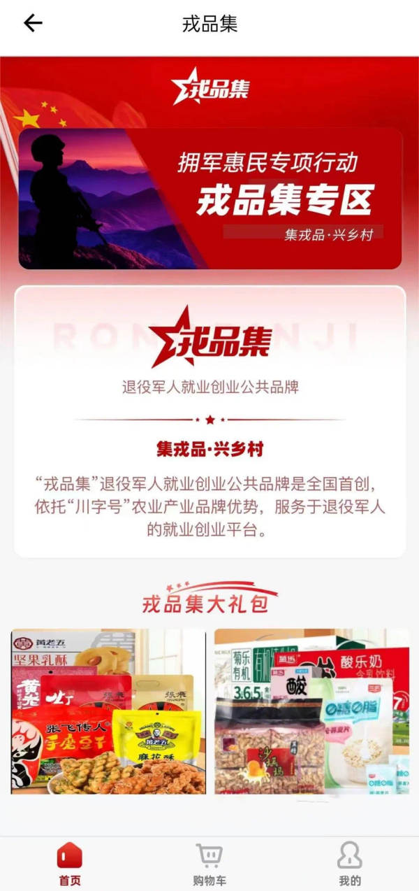 “戎品集”公共品牌,是全国首创,依托“川字号”农业产业品牌优势,服务于退役军人的就业创业平台。通过广聚社会力量,扩大终端农副产品等流通渠道,打通军创、拥军企业“产、供、销”链路,实现退役军人高质量就业创业需求和乡村振兴双向匹配,助力第一、第二产业和拥军事业双发展。