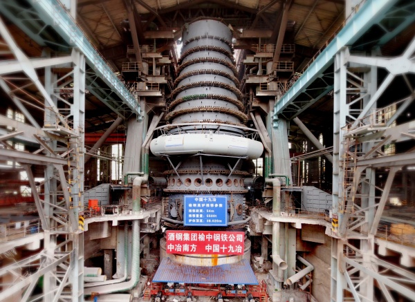该项目位于甘肃省兰州市,主要工程内容是将榆钢2800立方米高炉产能置换改造,将炼钢120吨转炉改造至具备提钒冶炼工艺的能力。对高炉的改造过程中,中国十九冶项目团队继续采用世界领先的高炉带基础整体推移独创技术,离线新建高炉并带基础整体推移至原高炉位,为业主缩短技改时间,创造最大效益。在沿用四缸八泵技术,确保高精度智能同步推移的基础上,项目团队更新升级推移装置,采用推移轨道标准化加工和装配式建造、预埋应力监测装置进行推移数据自动化监测和分析等创新方式,使得榆钢高炉的推移比南钢2号高炉更加平稳,滑轨行进更加顺畅。在此基础上,项目团队更大胆采用了随动反推技术,利用液压缸往复运动的特点,首次实现随动顶推,带领高炉带基础推移进入自动化操作新纪元。