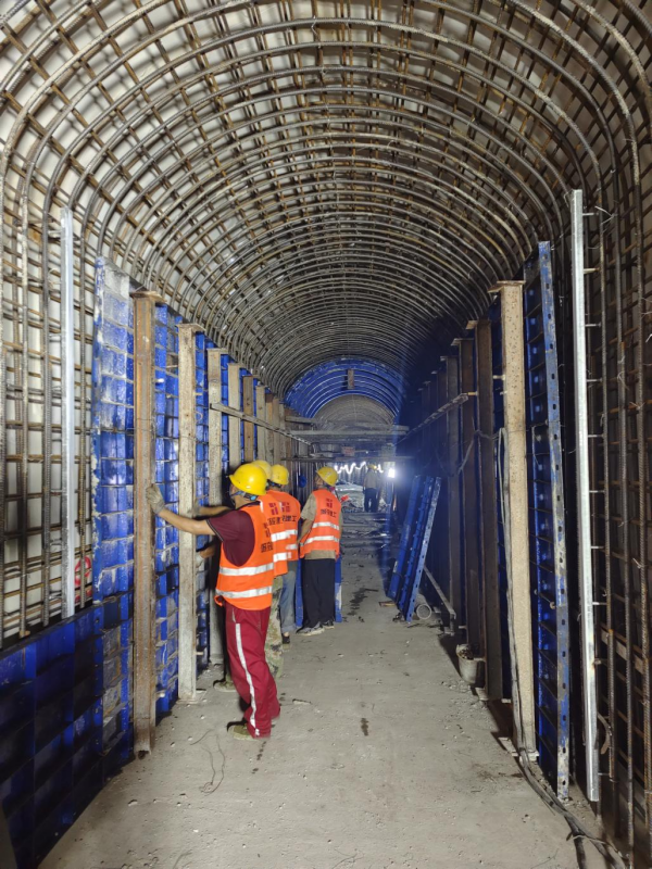 本项目电力隧道主体穿越三环路、北星大道一段、规划北星高架互通立交、10kV架空线路、通信塔、市政管线、凤凰山安置房二期规划用地、居民房、地铁27#线、规划下穿2.5环船槽,障碍物繁多复杂。穿越上述构筑物时,城投建工项目组采用浅埋暗挖法的作业方式,极大的缩短了施工工期,并最大程度的降低了施工风险,有效提高主体施工的安全性。