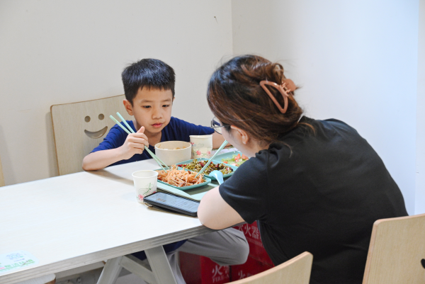 8月1日,室外气温最高达35℃,清源社区食堂的室内一片清凉。食堂餐桌上,罗女士正带着儿子小宝一起吃午饭。母子两人点了一份套餐外加一盘糖醋排骨,一共花了38元。“一个人带孩子做饭很不方便,得一边做饭一边留意孩子安全,往往做饭一小时、吃饭五分钟。”罗女士说,“有了社区食堂,一人约20块就能吃饱吃好。用餐后再和孩子到社区图书区看看绘本,带娃的生活也可以很惬意。”