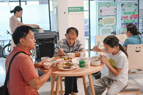 家住上善清波小区的李雪,是清源社区食堂的常客之一。自从女儿放暑假后,她每周至少有三天要带娃来社区食堂吃饭。“天气太热了,煮饭往往热得人满头大汗。加上我们母女两人饭量小,随便煮点饭菜都会剩下不少,干脆到食堂吃饭,方便又省事。”李雪说。