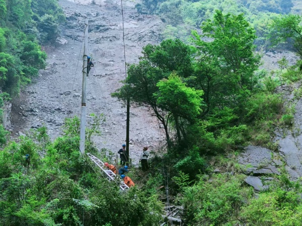 “我们抵达现场后,这里还滚石不断,不能近距离进行查勘。”第一支抵达现场的抢险队伍成员袁航标介绍道。针对这一情况,抢险人员利用无人机对受灾地段进行仔细飞巡。同时,根据无人机反馈图像信息,抢险队提前制定现场抢修施工方案,重新规划线路路径,确定新立电杆位置,转运抢修材料和工器具,安排人员驻守现场监测受灾地段,做足做细抢修准备。