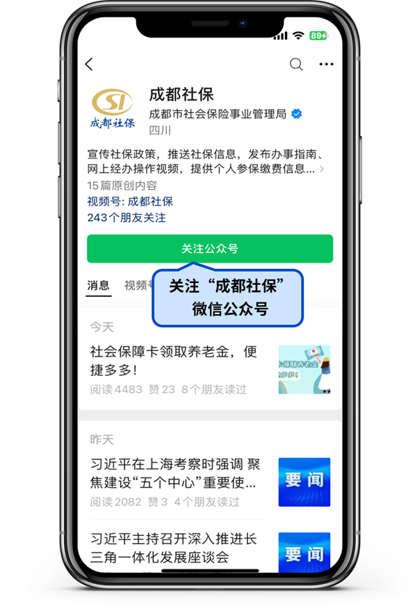 首先,拿出您的手机,打开微信,搜索并关注“成都社保”微信公众号。这样,您就能随时随地享受便捷的社保服务啦!