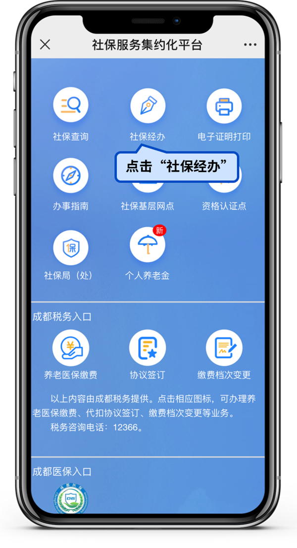 在“社保服务集约化平台”找到并点击“社保经办”模块,这是办理社保业务的快捷通道。