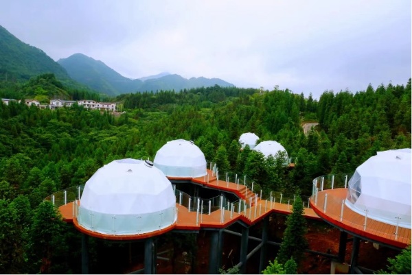 每至夏日,仙峰苗族乡群鱼社区村游人如织,民宿爆满。占地120余亩的群鱼小木屋度假区有特色民宿16栋27间,住宿环境堪比高端酒店;离地数十米高的星空帐篷由航空材料制成,冬暖夏凉。在这里,清晨可观壮美日出,入夜可赏璀璨星河,林间时有虫叫风鸣,空灵而撼人心。