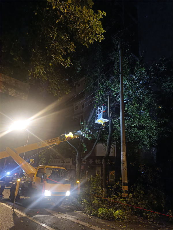 为确保电力供应万无一失,青羊供电中心的工作人员全天候紧盯电网安全。在一次例行的夜间巡线中,他们发现一棵树树枝在冒烟,立即查看,发现了一起隐蔽的线路树障。面对这一安全隐患,青羊供电中心迅速调派专业人员队伍和设备赶往现场,对涉事树木进行了修剪和清理,最终成功消除了这一安全隐患,为电力系统的安全稳定运行提供了有力保障。