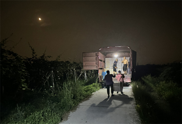四川新闻网-首屏新闻成都8月23日讯 8月23日凌晨一点过,月朗星稀,大多人已经进入了梦乡。位于成都市彭州蒙阳镇的一个猕猴桃基地内,却灯光闪耀,一片忙碌。10多名采摘工趁着月色和丝丝凉意,忙着猕猴桃采摘、搬运、装箱,“这几天太热了,晚上摘果,凉快得多。”采摘工肖健德说。