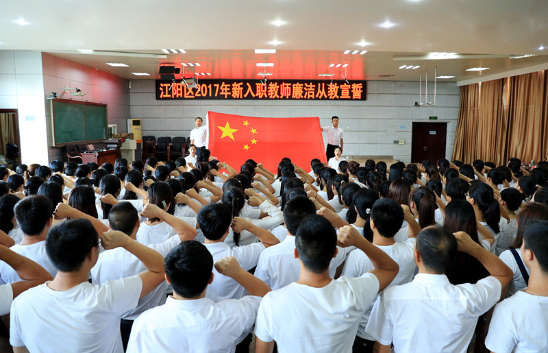 江阳区2017年新入职教师廉洁从教集体宣誓(江阳区宣传部供图 刘学懿摄) 四川新闻网泸州8月31日讯(易路勇 罗直秀 记者 岳东)学校开学,迎来的不只是新生,还有新教师。8月31日,记者从泸州市江阳区纪委了解到,日前该区204名新入职教师面向国旗庄严宣誓:“……廉洁从教,为人师表,为实现中华民族伟大复兴而努力奋斗!” 据悉,为严把新入职教师廉洁关,自8月24日开始,该区教育局、教研培训中心对全区2017年204名新入职教师进行了为期4天的培训,培训内容涵盖教育政策法规、教师职业道德、教师廉洁从教和教育教学技能等12个主题。与此同时,结合“微腐败”专项整治,在区纪委、教育局的组织下,全区67所公办学校(幼儿园),将教师廉洁从教集体宣誓活动作为新学期开学“第一课”,以此深化廉洁文化进校园活动,进一步坚定广大教师崇廉尚洁、无私奉献的信心和决心。 “作为一名新入职教师,通过廉洁从教宣誓,充分表达了我们的教育追求和执着信念,深刻感受到一种崇高的责任和使命”。弥陀学校小学部教师邱有寿告诉记者,这岗前第一课很有意义,今后将始终做到爱岗敬业,廉洁从教,为人师表,言传身教,为培养广大学生正确的价值观、人生观和世界观而不懈努力。 泸师附小城西学校副校长梁祖秀介绍,学校结合学科教学内容,挖掘廉洁教育素材,将敬廉崇廉教育与日常教学有机融合,努力通过课堂教学这一主阵地,将廉洁宣传教育转变成广大学生的廉洁意识、廉洁行为和廉洁自觉。比如:语文课上的公仆形象,品德课上的廉洁故事,数学课上的节约计算,美术课上的纪律漫画,音乐课上的廉洁之声,课外活动的“多米诺骨牌效应”游戏等等,都让学生们在掌握知识的同时,尽可能多地受到廉洁教育。 江阳区纪委相关负责人告诉记者,全区67所学校(幼儿园)根据各自实际,广泛开展“传承文明·书香江阳”校园诗会、“爱岗敬业、廉洁从教”主题党课、“醉美师德”主题演讲、“传承家风”亲子班会(队会、团会)活动,定期组织以反腐倡廉为主题的摄影展览、书画比赛、文艺演出等系列活动,真正将校园廉洁文化建设融入到校园党建工作各个环节,渗透到学校教学管理和师生日常管理各个领域,切实建立起廉洁文化教育、引导、规范的制度和机制,逐步形成了一校一特色、一校一品牌的廉洁文化宣传风格。(江阳区宣传部供图) |